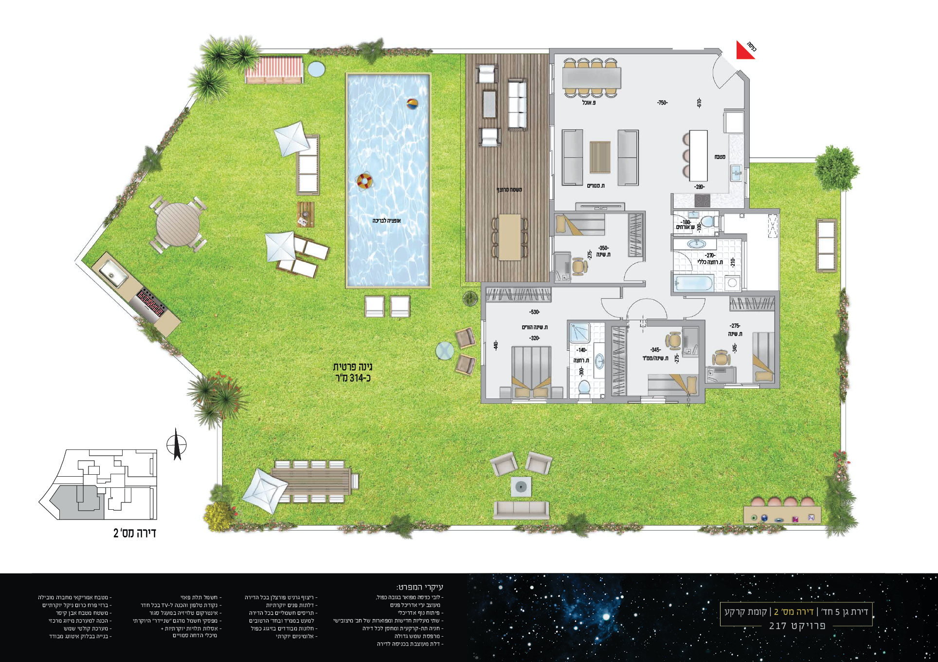 הפרוייקט מתאפיין בתכנון אדריכלי מוקפד ובסנדרט בניה גבוה תוך הקפדה על רמת גימור ללא פשרות ותוך שימוש במיטב החומרים המאפיין את חברת "מירלי ובניו"